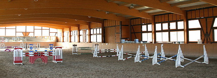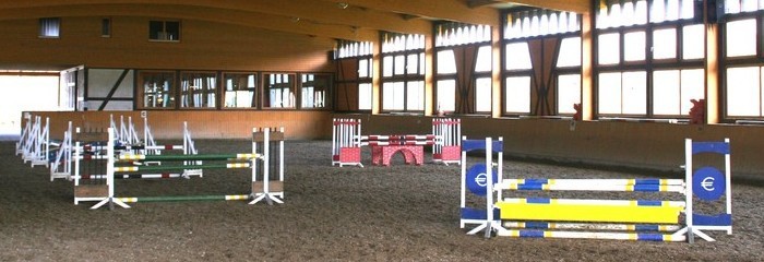 In unserer Reithalle können schnell und einfach individuelle Trainingsmöglichkeiten, zum Beispiel für das Springen, aufgebaut werden.